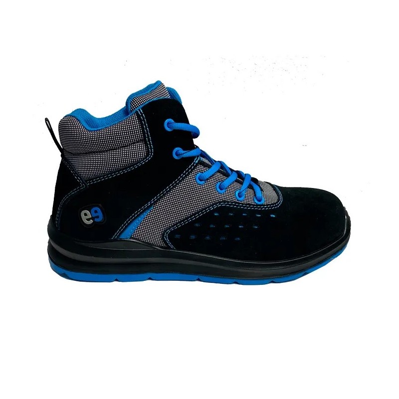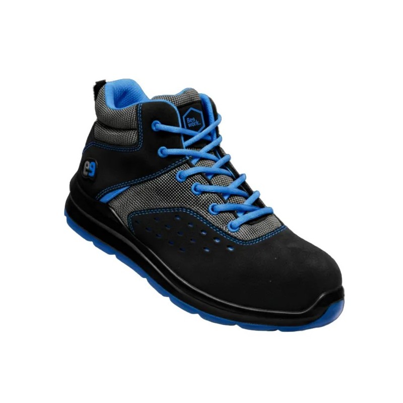 Con corte de tejido técnico en rejilla 3D y lengüeta del mismo material sobre espuma de látex, mejora la transpirabilidad y el ajuste. Forro acolchado "Shoe Tech", cierre mediante cordones y plantilla confort termoconformada de PU espumado, extraíble, antiestática, antibacteriana y fungicida. Suela EVA y caucho nitrilo antiestática, muy ligera, resistente a hidrocarburos y con nivel de deslizamiento SR. Mondopoint 10.