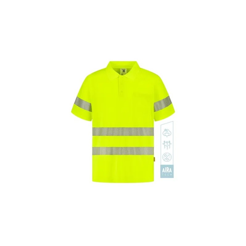 Polo de alta visibilidad de manga corta con elementos reflectantes. Vestuario laboral de alta visibilidad conforme a normativa EN ISO 20471