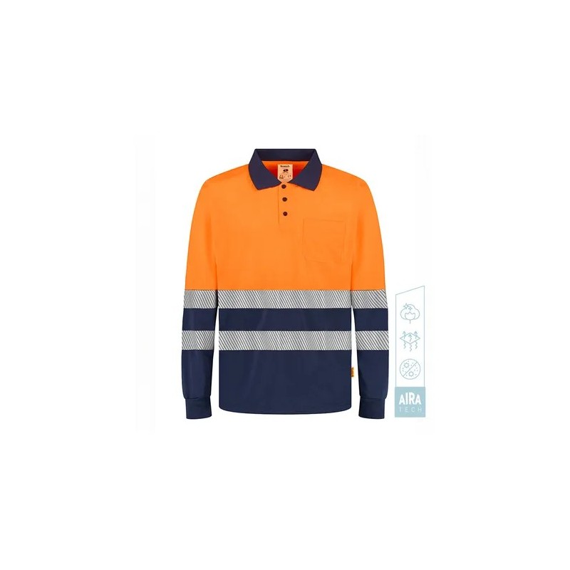 Polo de alta visibilidad de manga larga con elementos reflectantes. EN ISO 13688:2013 (Ropa de protección) + UNE-EN ISO 20471 (Ropa de alta visibilidad)