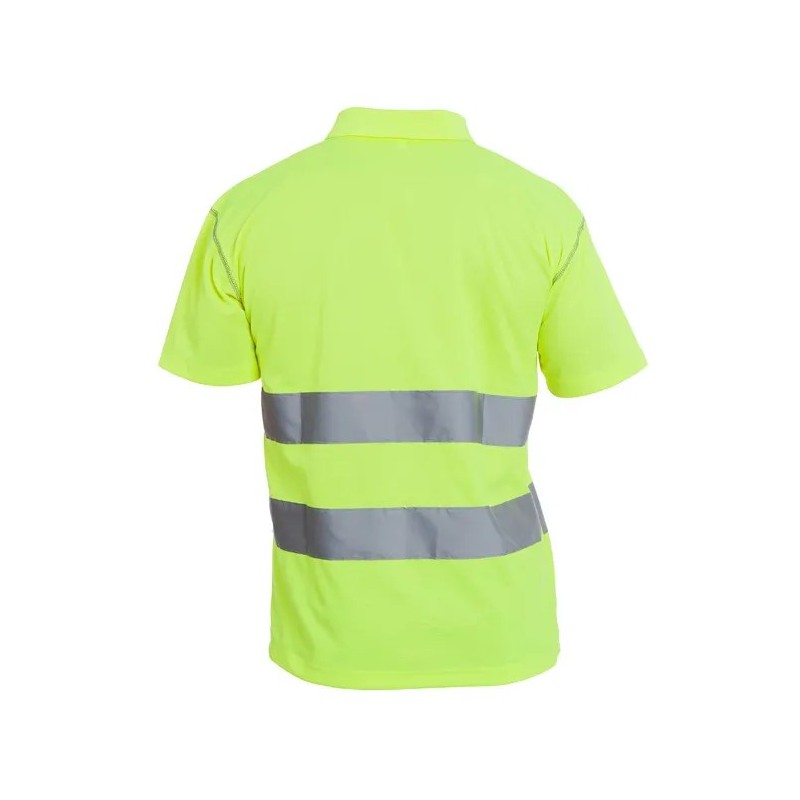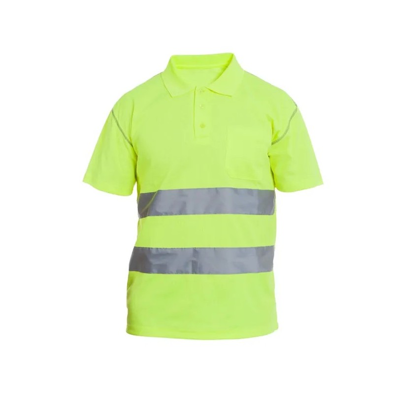 Polo de manga corta de alta visibilidad monocolor diseñado para profesionales que trabajan en entornos con tráfico, maquinaria o baja luminosidad y requieren visibilidad certificada y confort durante toda la jornada.