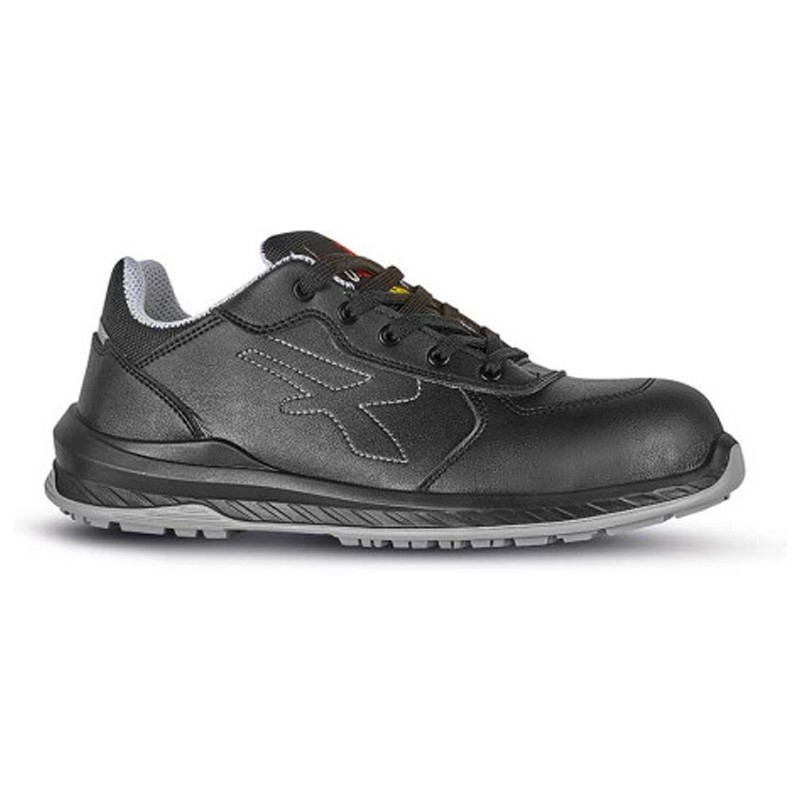 Zapato de seguridad ADROA S3 fabricado en piel hidrofugada con puntera y plantilla metálica. Suela PU/PU antideslizante SRC, antiestática y resistente a hidrocarburos. Confort profesional para entornos exigentes.